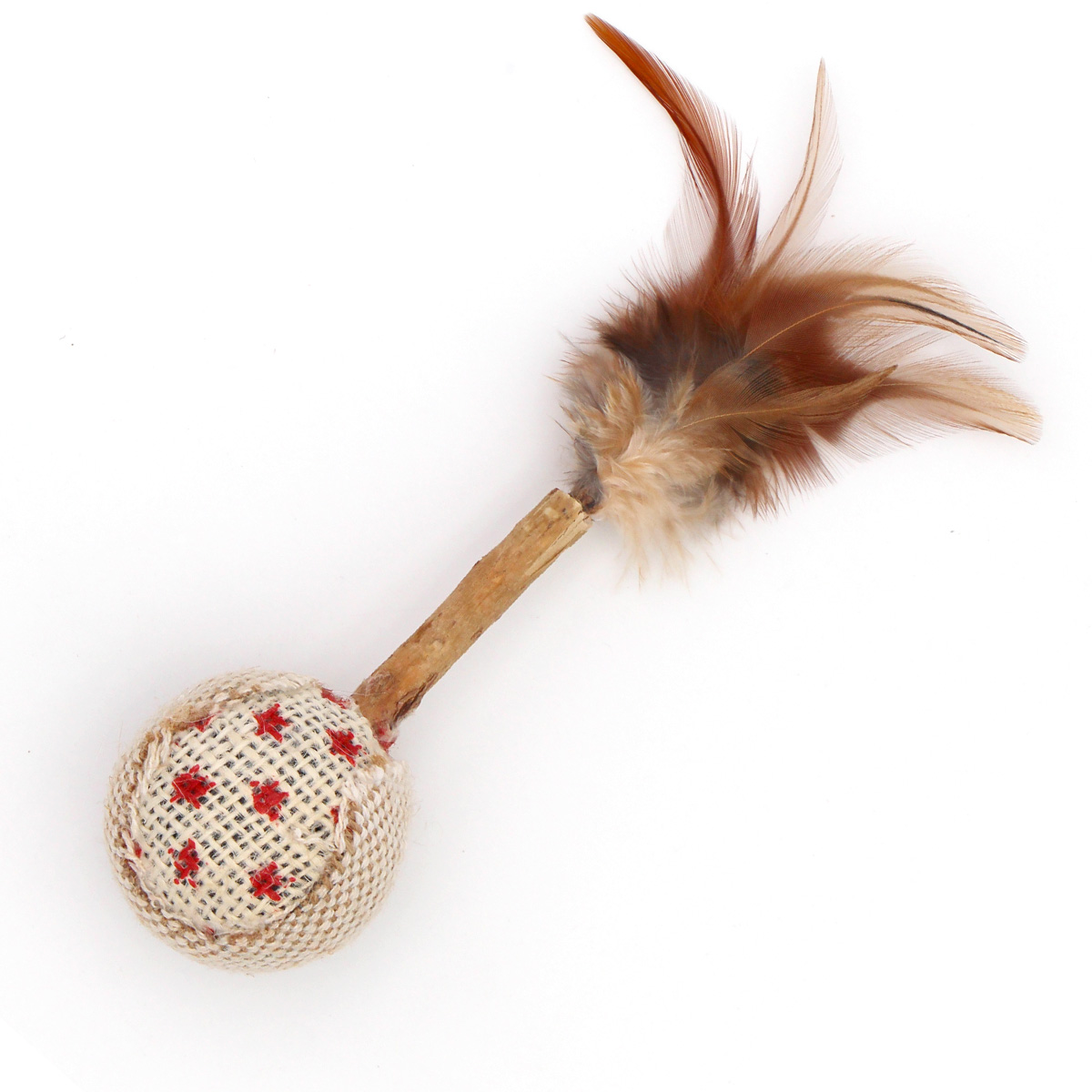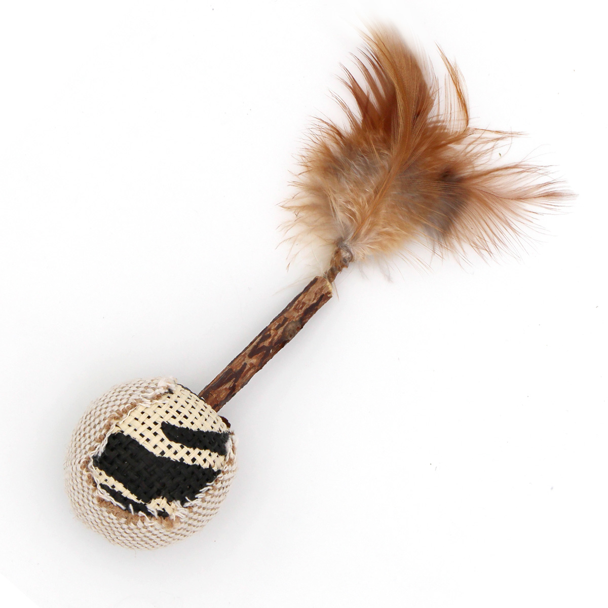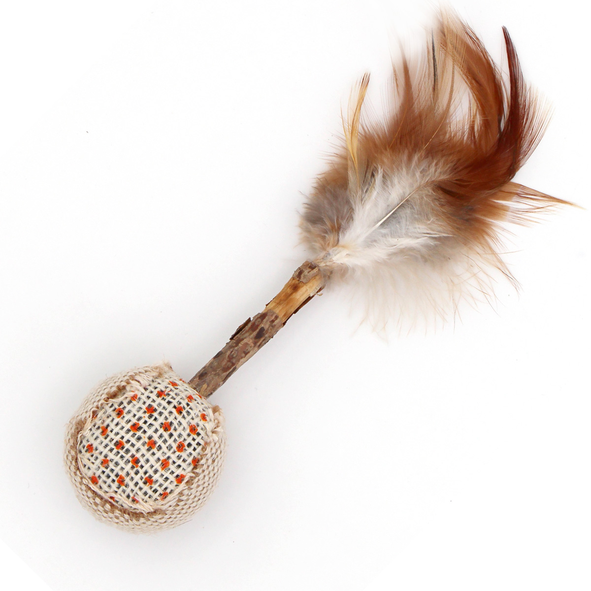 La balle à hochet avec plumes et bâton de matatabi est un jouet complet qui éveille les sens du chat. Elle associe plusieurs éléments naturels :