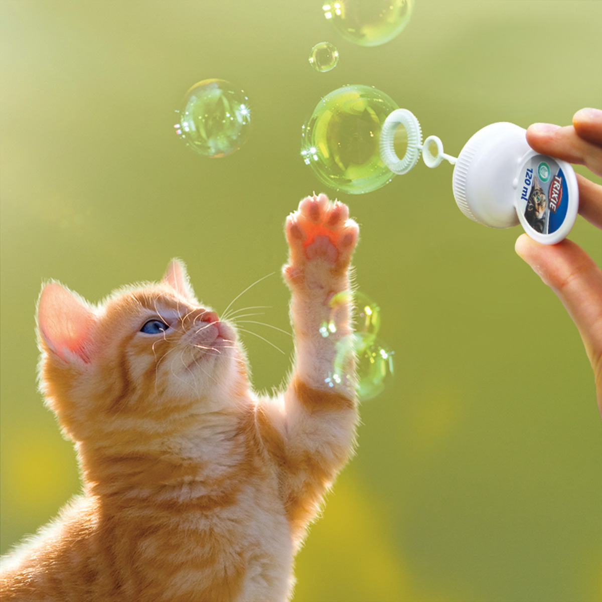 Composées d’extraits purs de cataire (herbe à chat), elles dégagent une odeur euphorisante qui attire irrésistiblement les chats et les incite à bondir, sauter et chasser les bulles dans les airs.
