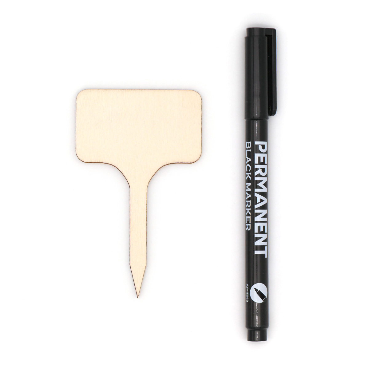 Etiquette en bois à piquer et marqueur noir