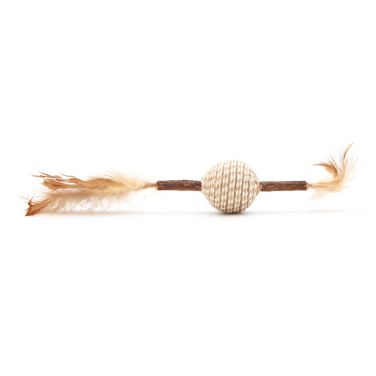 La balle en corde permet au chat de mordre et mâchouiller, tandis que les plumes légères excitent son instinct de poursuite.