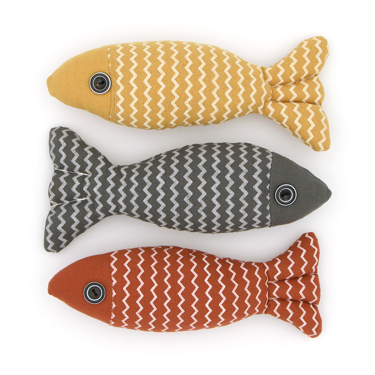 Poisson en tissu de 20 cm avec boutons cousus pour les yeux