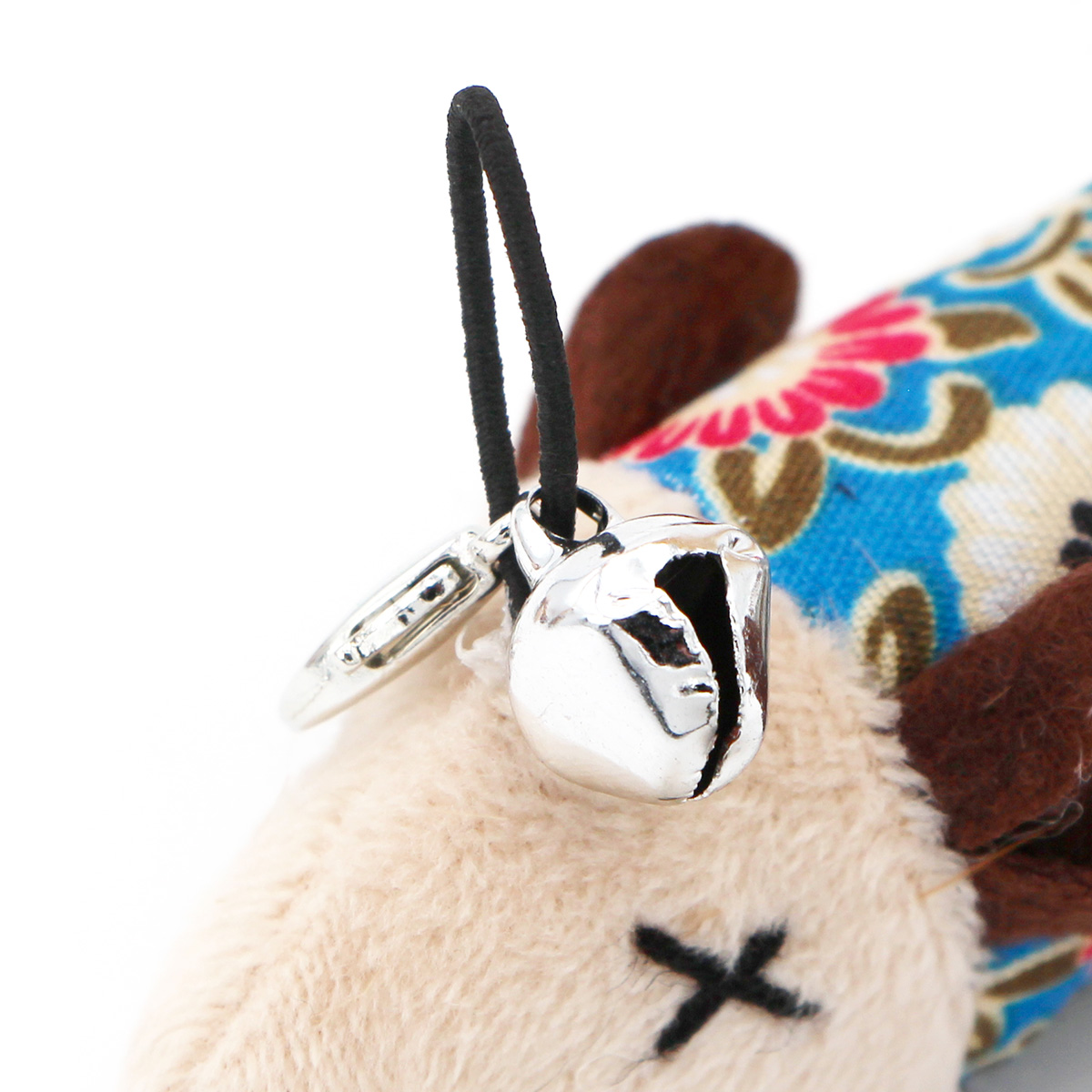 Fabriquée à partir de tissu résistant, cette petite souris se décline en deux versions : bleue ou marron, ornées de motifs floraux.