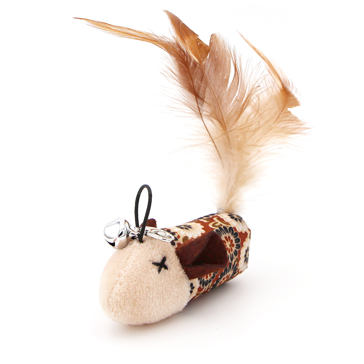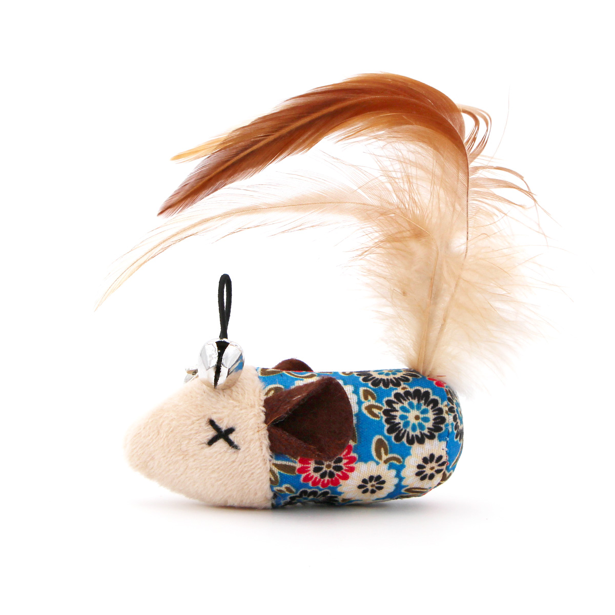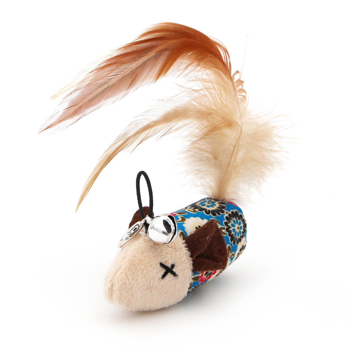 Nom du produit Souris en tissu avec plumes et grelot à la cataire pour chat